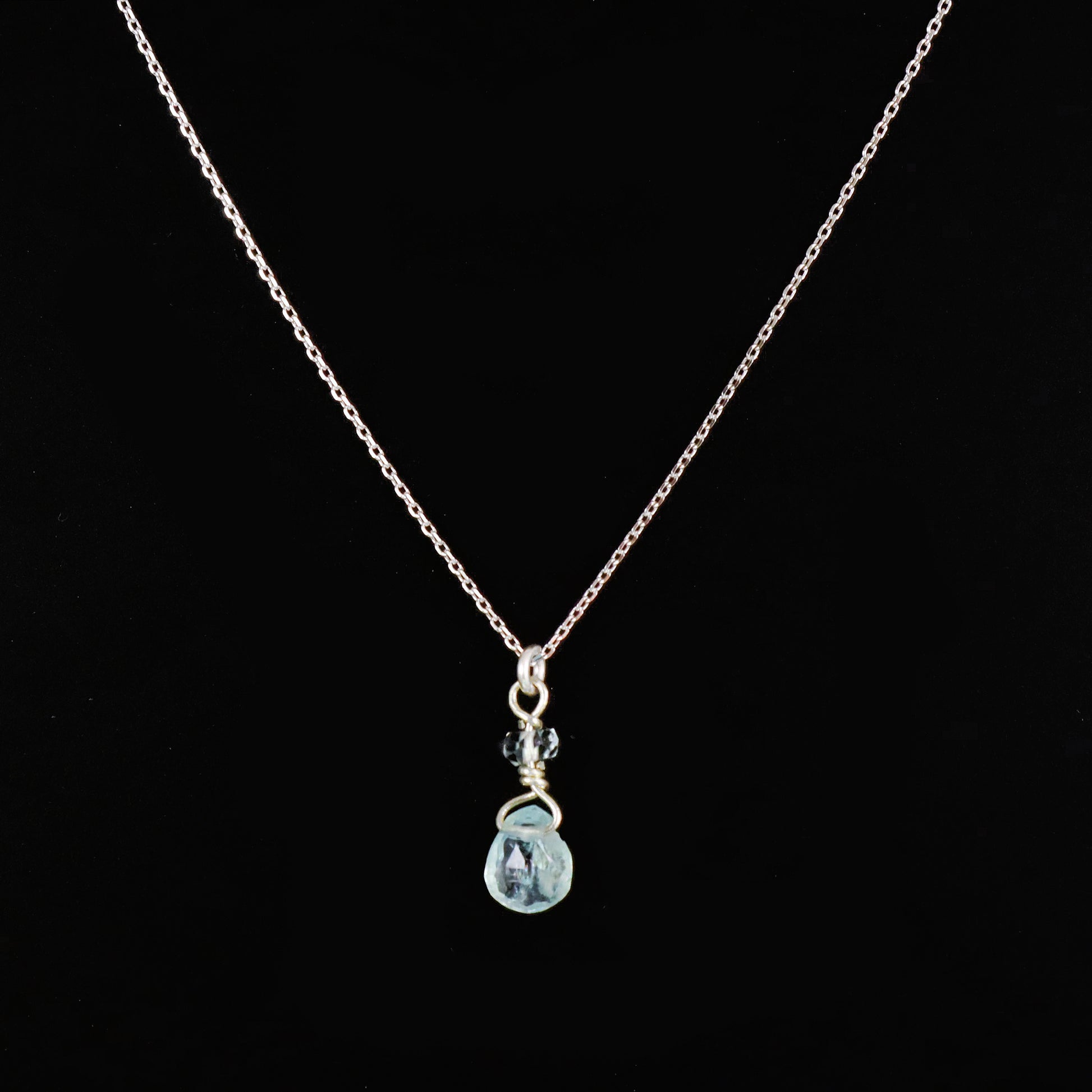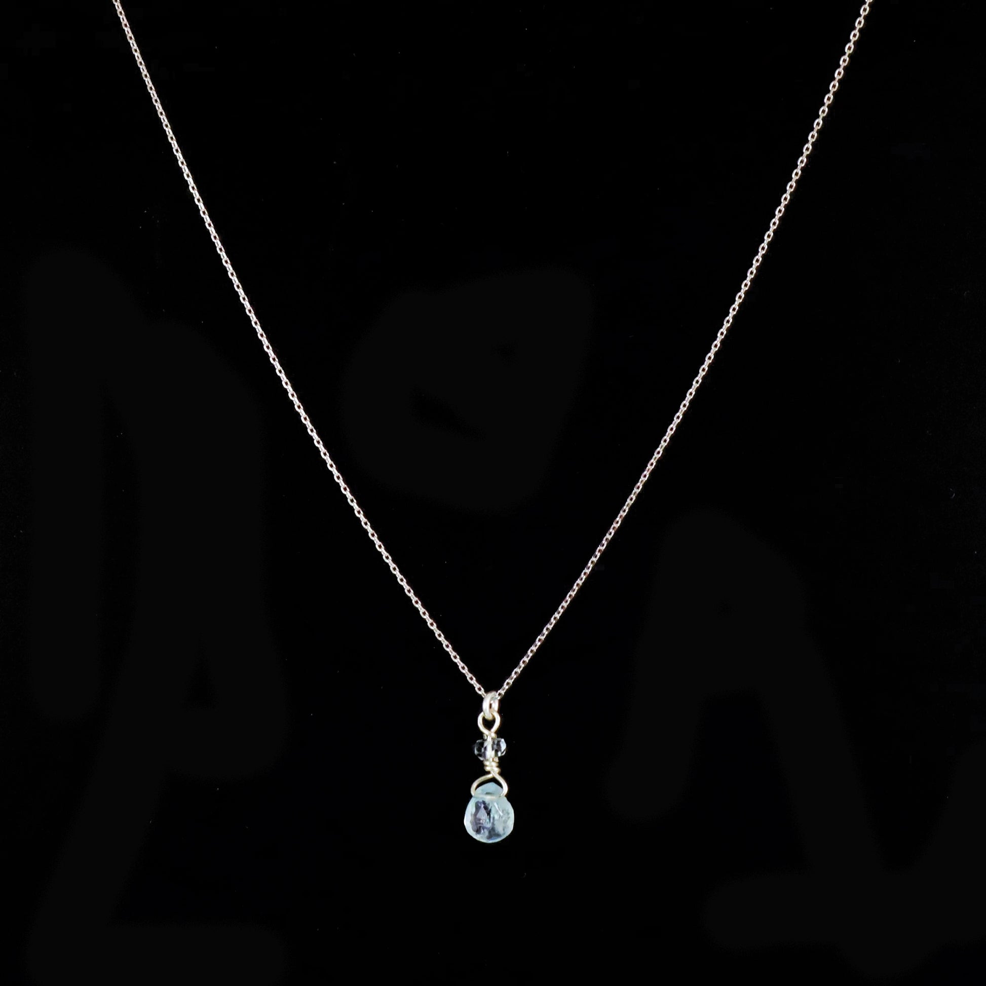 Exquisite 9ct White or Yellow Gold fine chain necklace adorned with a glinting aquamarine faceted droplet - a classic piece for everyday wear.