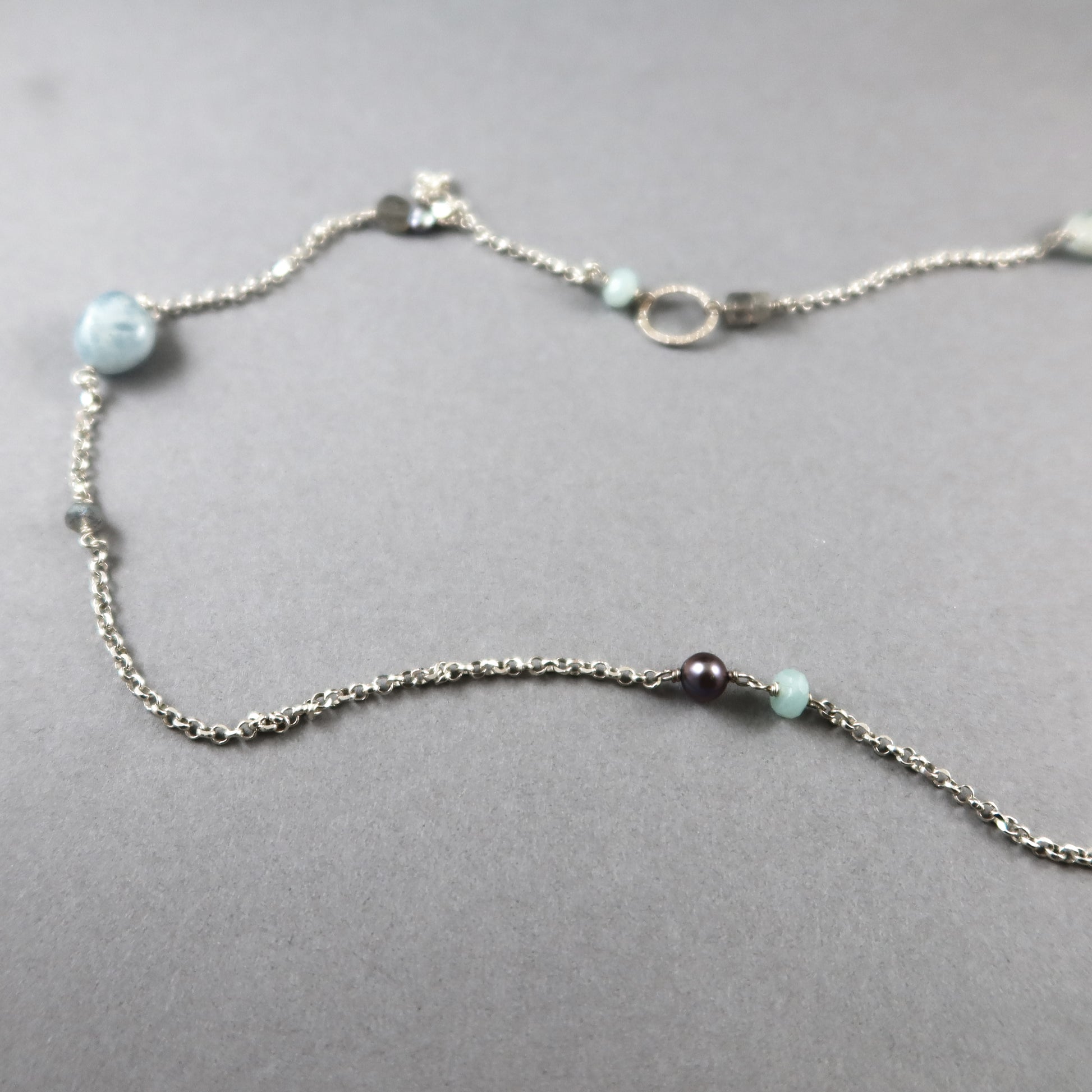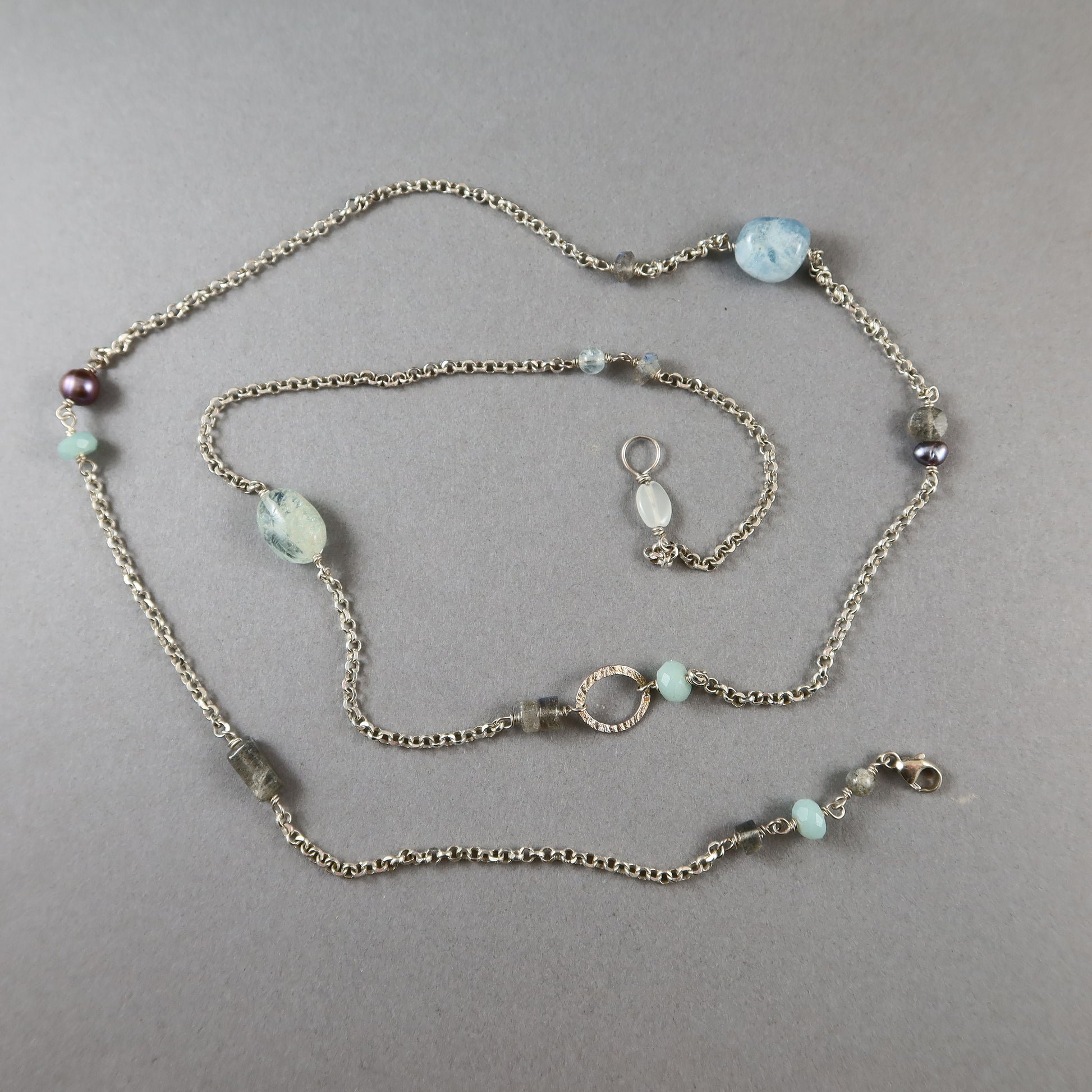 - Gemstone - Aquamarine, Labradorite and Cultured freshwater pearls.